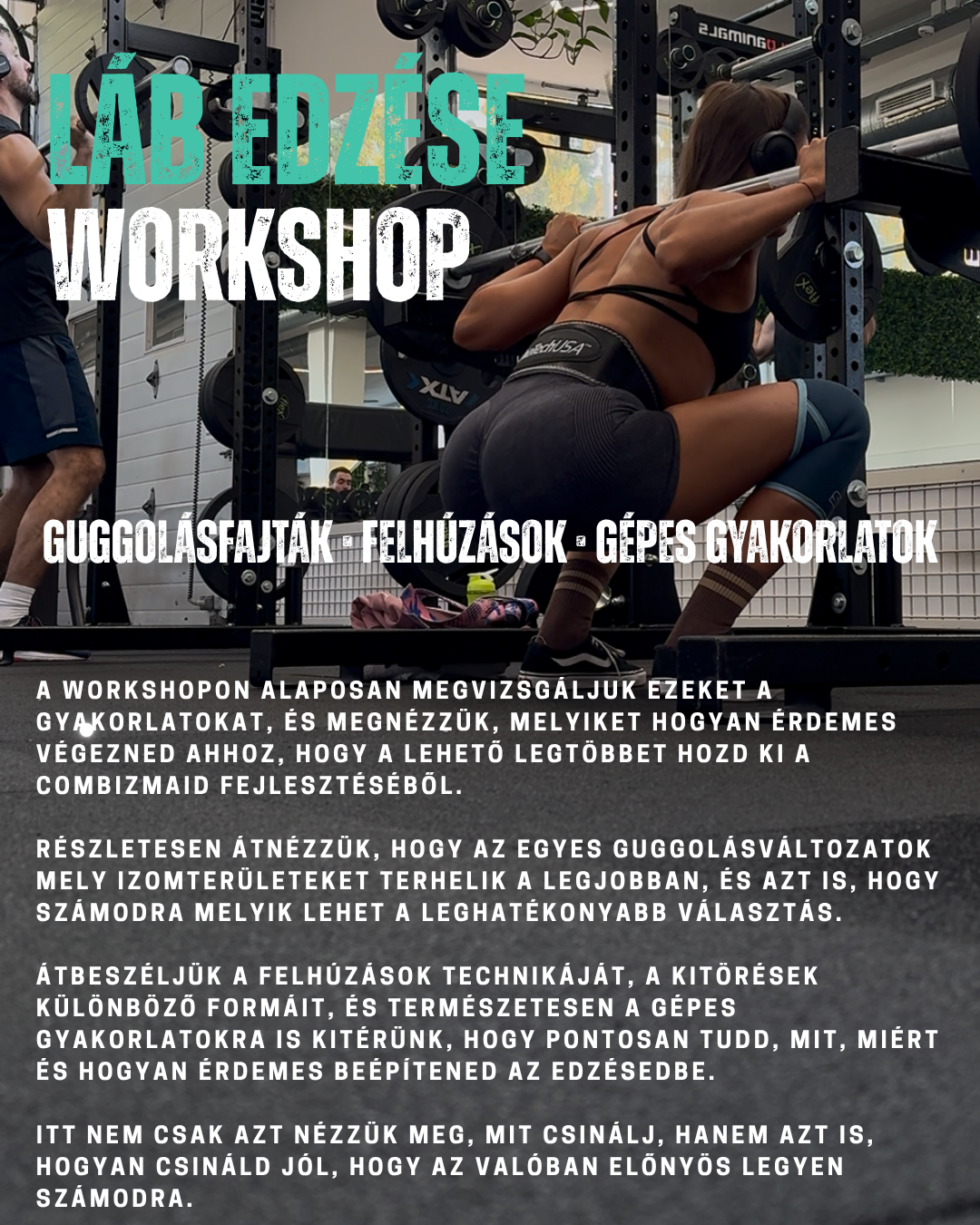 Ez nem egy motivációs edzésnap, ahol elhangzik néhány tipp. Hanem ez egy tudásalapú, lépésről lépésre felépített workshop. Megérted, guggolás biomechanikáját, hogyan működik a test és mit rontanak el sokan már az első mozdulatnál. Nincsenek csodagépek, nincsenek használhatatlan trükkök.
