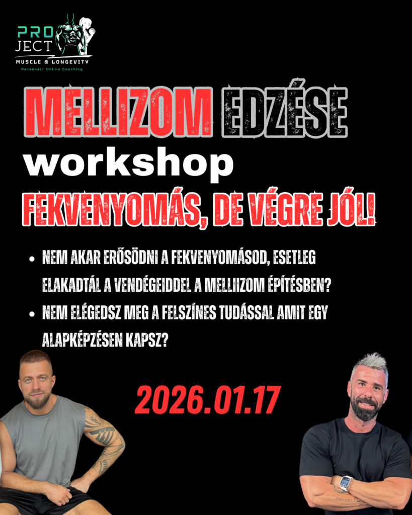 Edzőknek és hobbisportolóknak tartunk 5–6 órás, gyakorlatcentrikus workshopot a fekvenyomás és a legfontosabb mellizomgyakorlatok precíz, hatékony kivitelezéséről.